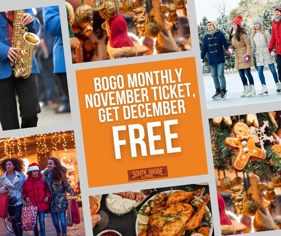In response to ongoing train service adjustments, the South Shore Line announces it will extend its “Buy 1 Get 1 Free” monthly ticket promotion for November 2024. All monthly tickets purchased for the month of November 2024 will remain valid for December 2024.