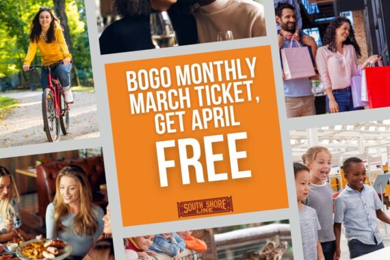 The South Shore Line announces it will extend its “Buy 1 Get 1 Free” monthly ticket promotion for March 2025. All monthly tickets purchased for the month of March 2025 will remain valid for April 2025. Passengers purchasing a paper March monthly ticket should plan to keep that ticket and use it through April, and