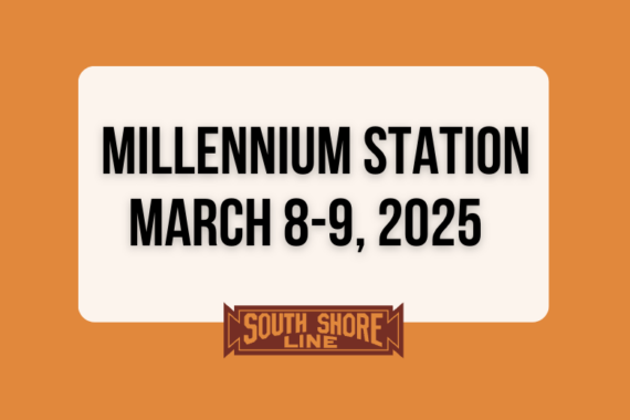 Between 6 a.m. and 7 p.m. Saturday and Sunday, March 8-9, 2025, all South Shore Line passengers utilizing Millennium Station will temporarily board/detrain from the Metra Depot (Tracks 5 and 6), located northwest of the SSL platform.