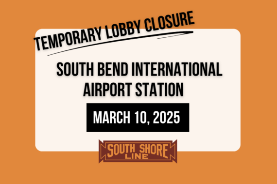 Passengers are advised that the South Bend Airport train station lobby will be temporarily closed due to flooring construction beginning Monday, March 10, 2025, and lasting approximately one month.